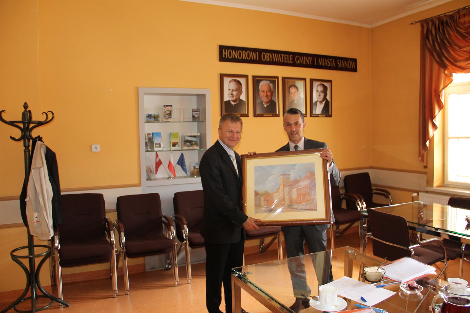 We wtorek 22 maja odby³o siê posiedzenie Zarz¹du Dar³owskiej Lokalnej Grupy Rybackiej. Gospodarzem, tym razem, by³ Maciej Berlicki - Burmistrz Gminy i Miasta Sianów oraz Cz³onek Zarz¹du DLGR. Przed przejœciem do oficjalnego porz¹dku obrad odby³a siê mi³a uroczystoœæ. Burmistrz Maciej Berlicki wrêczy³ Prezesowi Arkadiuszowi Klimowiczowi - Burmistrzowi Dar³owa prezent z okazji 700 lecia drugiej lokacji Dar³owa. Nastêpnie Arkadiusz Klimowicz uhonorowa³ ka¿dego z obecnych Cz³onków Zarz¹du pami¹tkowym medalem wydanym z tej okazji. Dalsza czêœæ obrad mia³a ju¿ charakter czysto merytoryczny. Najwa¿niejszym punktem by³o podjêcie uchwa³y w sprawie zwo³ania Zwyczajnego Sprawozdawczego Walnego Zebrania Cz³onków DLGR. Termin ustalony zosta³ na 20 czerwca, godz 11.00. Po wyczerpaniu porz¹dku obrad Maciej Berlicki zaprosi³ wszystkich na spacer do Parku Miejskego, w którym trwa realizacja operacji pn. "Rewitalizacja przyrodnicza i techniczna Parku Miejskiego", dofinansowanej w kwocie ponad 600 tys. ze œrodków Dar³owskiej Lokalnej Gupy Rybackiej.